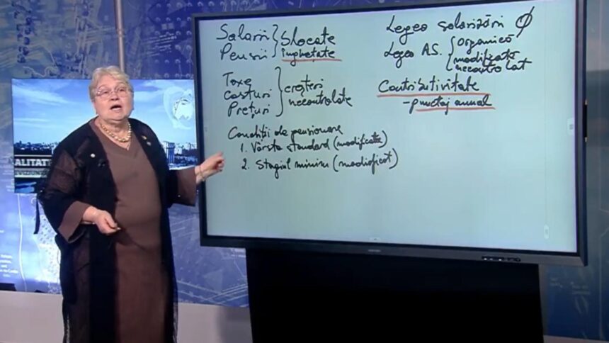 Pensiile românilor sunt blocate de doi ani, iar veniturile scad semnificativ din cauza înghețării acestora, a impozitelor triple și a prețurilor mari la alimente. Experta în pensii Dorina Barcari, senator AUR, subliniază că salariile și pensiile sunt afectate de taxe și costuri în continuă creștere, iar Legea salarizării nu se aplică.