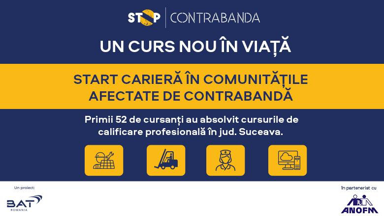 BAT România, prin intermediul platformei Stop Contrabanda, și Agenția Națională pentru Ocuparea Forței de Muncă (ANOFM) anunță demararea unui parteneriat pentru sprijinirea comunităților vulnerabile afectate de contrabanda cu produse din tutun. Proiectul are ca scop organizarea de cursuri de calificare profesională în județele grav afectate de fenomenul contrabandei.