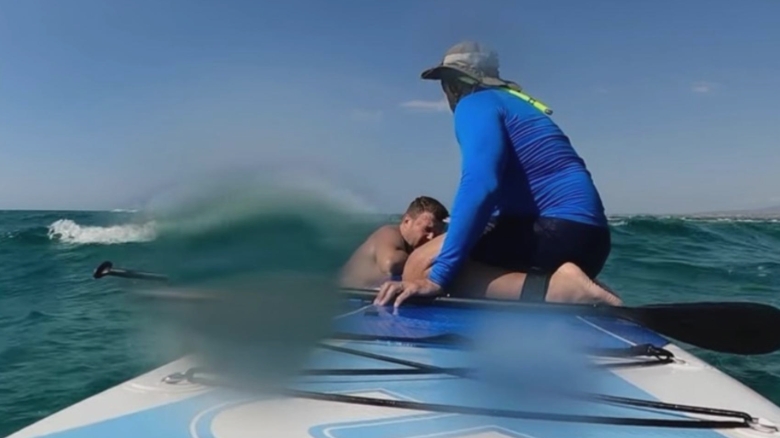 Vangelis Papaioannou, un surfer care se afla în zonă, a asistat la incident. După ce a terminat de filmat, a auzit țipetele copiilor care își pierduseră tatăl. Acesta a observat bărbatul la o distanță de 50-60 de metri, plutind și fără a mai putea înota. Vangelis a intervenit, reușind să-l ajute pe tată, care era în stare gravă și înghițea apă. I-a arătat cum să se agațe de placa sa și împreună au revenit la mal.