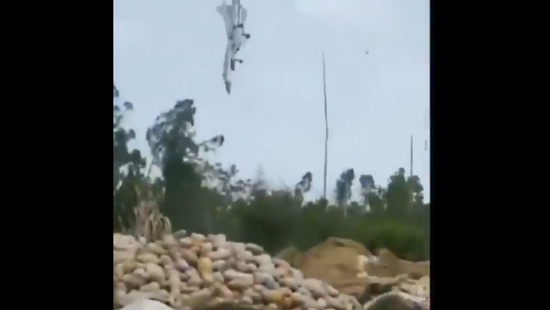 Imaginile distribuite pe rețelele de socializare arată cum avionul militar se prăbușește și ia foc. După incident, pilotul a fost preluat de localnici, iar autoritățile au confirmat că nu au existat victime la locul accidentului.